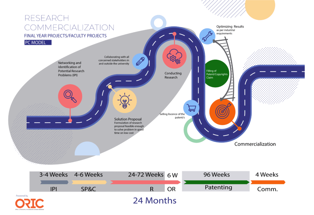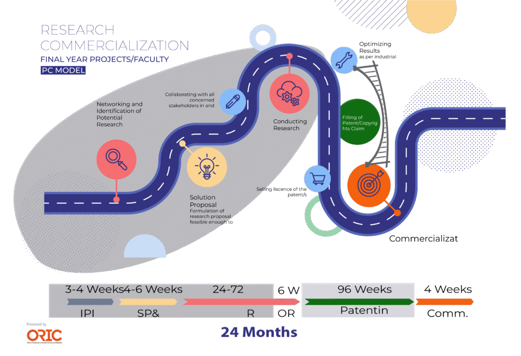 The research commercialization office also presents the PC model, a complementary framework designed to unlock the commercial potential of completed final year projects and faculty research. Unlike the PPC model, which focuses on integrating patent-seeking from the start of a project, the PC model focuses on Patent acquisition and subsequent Commercialization efforts for existing innovations.