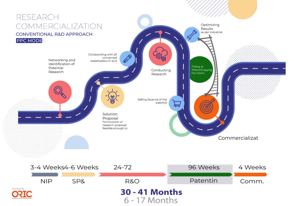 The Project-Patent-Commercialization (PPC) model is a novel framework developed to enhance the efficiency and success rate of technology commercialization initiatives. Created by the Research Commercialization Office, the PPC model provides a systematic and structured approach to assist researchers and entrepreneurs in navigating the complex process of transforming innovative ideas into market-ready solutions.